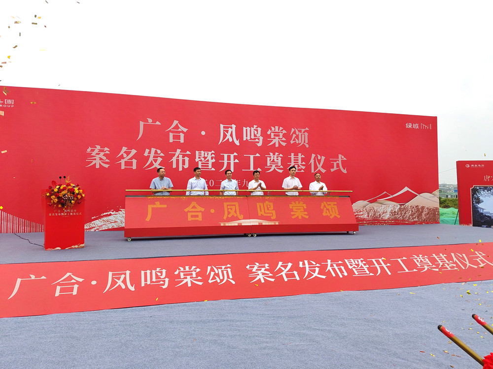 揚(yáng)建網(wǎng)訊 9月29日上午8時(shí)58分,由廣合集團(tuán)開發(fā)、揚(yáng)建集團(tuán)承建的揚(yáng)州GZ566房地產(chǎn)項(xiàng)目(廣合·鳳鳴棠頌)隆重舉行案名發(fā)布暨開工奠基儀式。廣陵區(qū)委常委、副區(qū)長王兵,廣陵區(qū)政府辦、財(cái)政局、住建局、資規(guī)局、東南新城代表,廣合集團(tuán)董事長陳斌,揚(yáng)建集團(tuán)總經(jīng)理鄒厚存等共同出席了活動(dòng)。