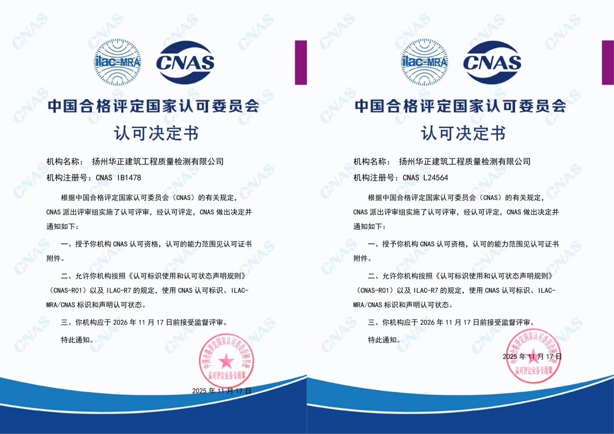 華正公司此次同時獲得了實驗室認可與檢驗機構(gòu)認可。實驗室檢測能力涵蓋金屬材料及其制品、混凝土材料、砂漿材料、主體結(jié)構(gòu)工程、磚與砌塊、工程測量與監(jiān)測、裝飾裝修工程等七大類。檢驗能力包括工程施工質(zhì)量評價、結(jié)構(gòu)安全性和可靠性評價、結(jié)構(gòu)抗震性評價、裝飾裝修施工質(zhì)量評價等四大類,檢驗檢測能力覆蓋了建筑工程主體主要項目參數(shù)。